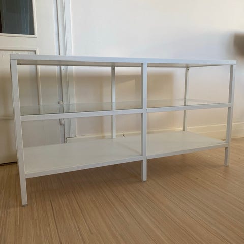 Erittäin jykevä harmaa/musta tv-taso ja televisio kaupan päälle.