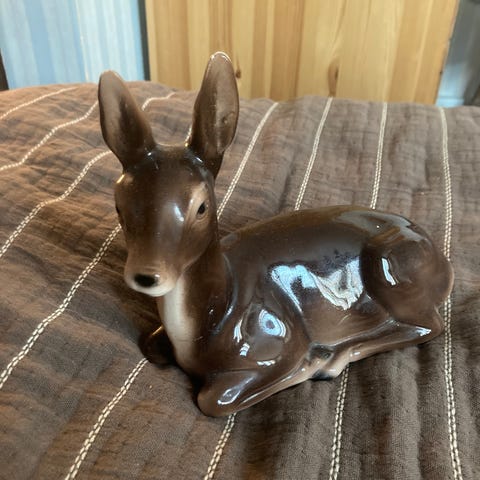 Ehjä ja siisti posliinipeura / posliinikauris. Korkeus 10 cm, pituus 10 cm.