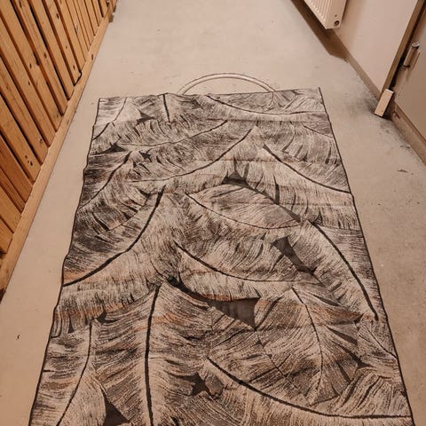 Myydään kuvan matto. Pohjan väri harmaa ja kuviointi valkoinen. Koko 133x190 cm. Kunto hyvä.