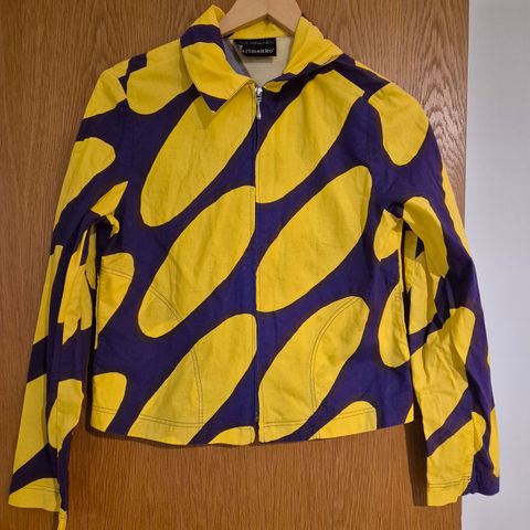 Napeissa Marimekko-teksti, kaikki napit tallella plus varanappi.