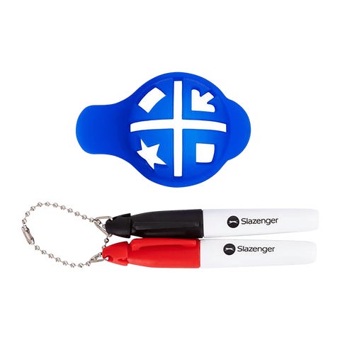 Tyylikkäät ja kätevät merkit, jotka sopivat golfpallojen merkitsemiseen griinille. Erinomainen tapa lisätä persoonallisuutta golfpeliin.Golfgearin Poker Chip Marker 2 -pakkaus on tyylikäs ja kätevä tarvike golfaajille, jotka haluavat hauskan mutta toimivan tavan merkitä pallonsa griinillä. Merkit ovat saaneet innoituksensa perinteisistä pokerimerkeistä ja ne tarjoavat erinomaisen näkyvyyden ja vakauden, mikä tekee niistä loistavan lisän jokaisen golfbägiin.