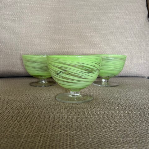 Iittala / Sirkku-Liisa Kumela lasiset jälkiruokakulhot, väri violetti. Setti sisältää kuusi kappaletta. Kulhot ovat valmistettu lasista ja sopivat jälkiruokien tarjoiluun. Kunto erinomainen. Säilytetty kaapissa käyttöä odottamassa. Koko sarja 6 kpl maksaa 45 euroa. Voin lähettää. Mmm.