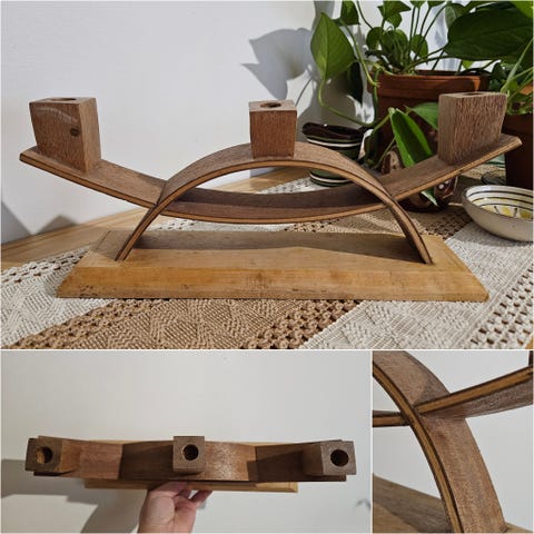 Myydään kuvan ehjä ja siisti puinen kynttelikkö / kynttiläteline/ kynttiläpidike/ kynttilänjalka