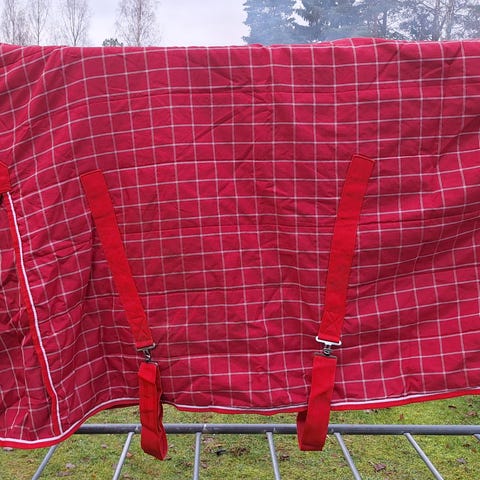 Soljissa ruostetta, kyljessä n. peukalonpään kokoinen reikä pintakankaassa, helppo halutessaan paikata.