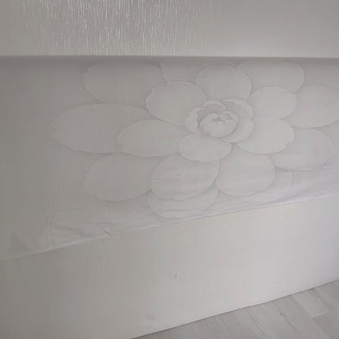 Kaunis puinen, valkolakattu parisängynpääty.