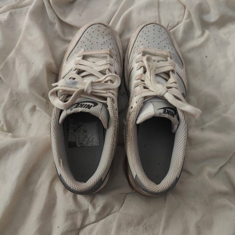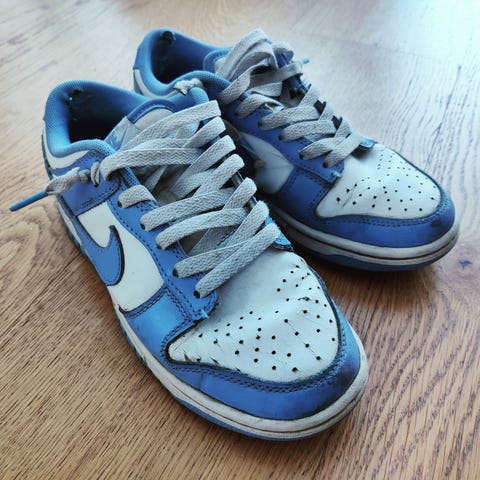 Oikean jalan kengän kantapäässä pikku kuluma. Muuten ehjät ja puhtaat, juuri pestyt.