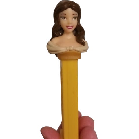 Myydään karkkiautomaatti PEZ jossa on Disney prinsessa Ruususen pää.