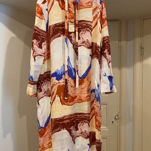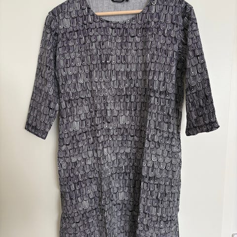 Kerran käytetty ja pesty Marimekon puuvillamekko, koko 40. Väri on musta ja luonnonvalkoinen. Taskut löytyy myös! Kai-kai noin 55cm
