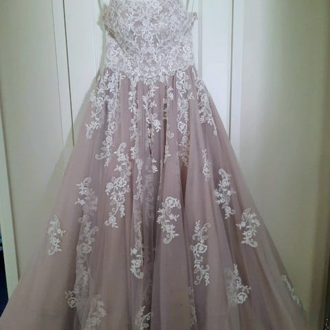 Kaunis pitsikoristeinen mekko ja tyllialushame vanteineen. Kokomerkintä 6, ollut käytössä 166 cm 36-38 kokoisen tytön päällä.
