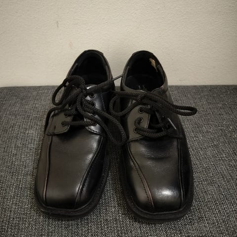 Myynnissä lasten mustat nauhalliset juhlakengät koossa 36. Pohjallisen pituus 24 cm. Materiaali nahkaa.