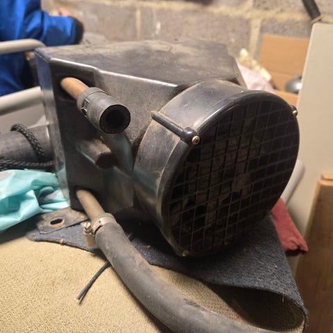 Auton vesikiertoon kytkettävä lisälämmitin puhaltimella hiacen bussista . Mut laitettavissa autoon kun autoon .