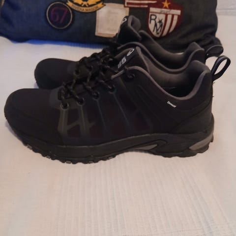 Halti Dawson Low DX ulkoilukengät koossa 42, itselleni on ollut aika tiukat joten saattaa sopia paremmin koolle 41. Veden- ja tuulenpitävät. kengissä kulumaa nauhojen kohdalla sekä kantapäissä, mukavuuteen nämä eivät ole kuitenkaan haitanneet.