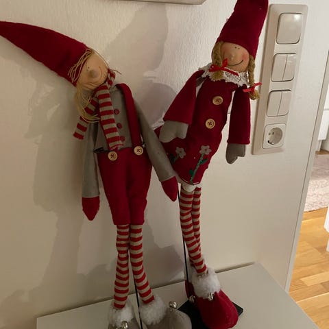 Hyväkuntoiset tontut vaikka pukinkonttiin. Mittanauhaa en löytänyt, mutta pienimmät tontut noin kahvipaketin kokoisia. Keskimmäinen hiukan isompi. Yhteishinta kaikille. Nouto Kangasalan Tursolasta tai postitus onnistuu.
