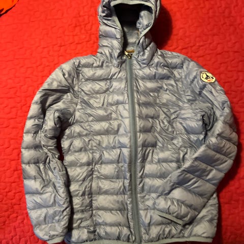 Hyväkuntoinen kevyt toppatakki, irrotettavalla hupulla. Pieni viilto kankaassa jonka saa varmasti korjattua.
