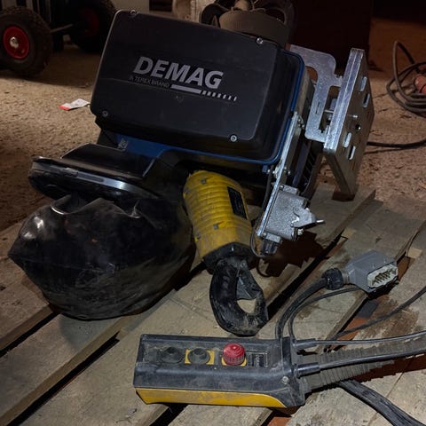 Mannesmann Demag Typurring Hubeck nostolaite. Laite on valmistettu Länsi-Saksassa ja soveltuu nostotehtäviin. Varustettu sähkömoottorilla ja hihnakäytöllä. Tarkemmat tekniset tiedot löytyvät laitteen kilvestä.