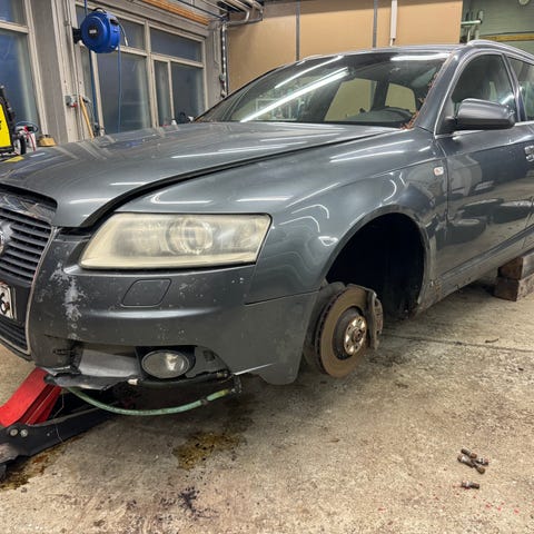 Pois nurkista Audi A6 C6 raato 3.0 tdi 171 kw moottorilla. Ohjelmoitu 260 hp/ 570 nm. 450 tkm ajettu. Vm 2008. Kuvista näkyy mitä autossa on jäljellä. Mieluiten koko auto kerralla. Sovittaessa onnistuu kyytiin nosto.