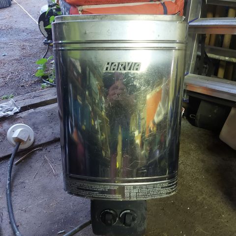 Käytetty, Harvia 6kw sähkökiuas. toimivana purettu 3v sitten, vastukset mitattu ja ne ainakin kunnossa. Seinäteline, ei liitos johtoa.