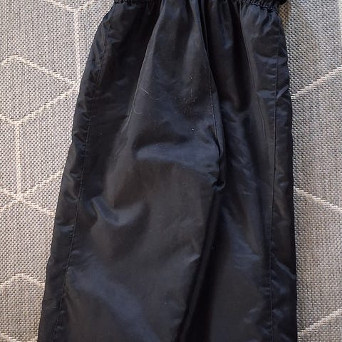 Myydään mustat toppahousut. Polvet juuri paikattu. Lahkeissa jälkiä. Ei jalkalenksuja. Koko 128.