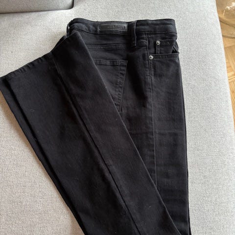 Myydään siistit vähänkäytetyt mustat pehmeät joustavat farkut. Hajusteeton eläimetön koti.