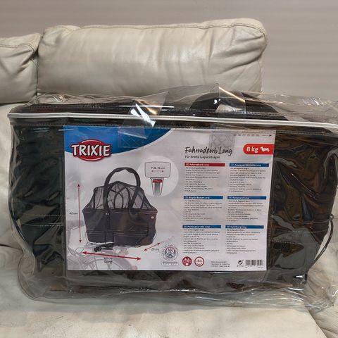 Trixie koiran pyöräkori. Uusi, vain kokeiltu. Sopii pienelle koiralle 6kg. Sisältää sadekuomun, tankotelineen ja asennusohjeen. Asennus pyörän tankoon. Nouto Lahdesta.