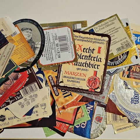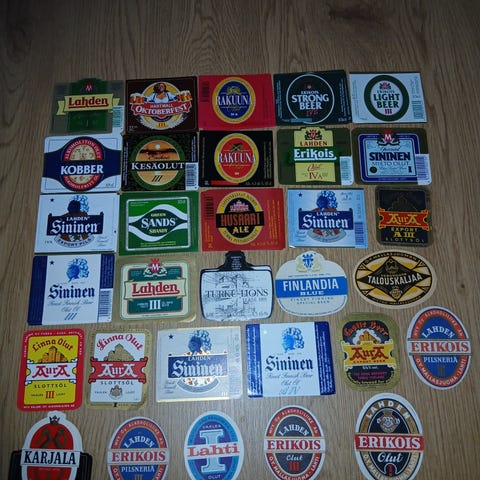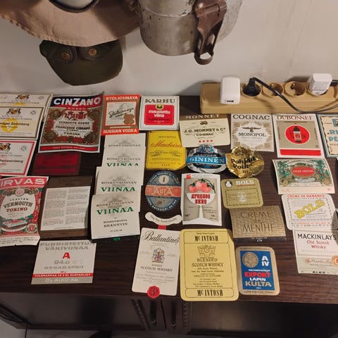Myyntiin kasa vanhoja etikettejä, lähinnä ulkomaisia viinejä. En ole laskenut määrää mutta kuva kaikista.