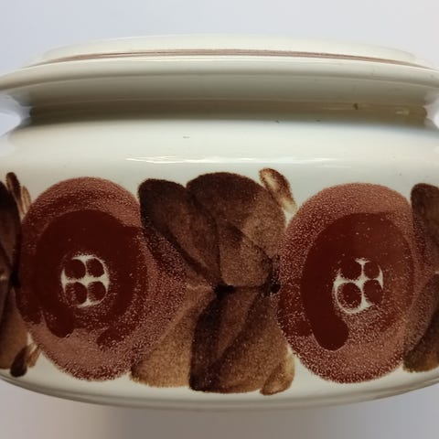 Hieman siellä täällä maalausvirheitä lasitteen alla, muuten ehjä ja kiiltävä.
