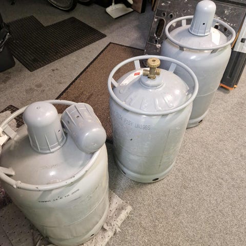Euro-sarjassa 4 adapteria saksalaisten nestekaasupullojen täyttämiseen Euroopan huoltoasemilla
