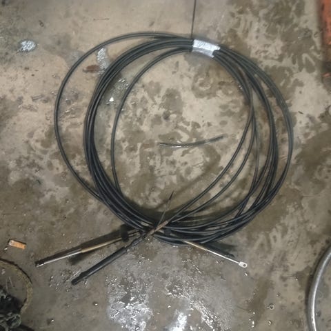 Kuvan omc kaukosäädin. Sähköjohdon pit 4.7m ilman moottorin pistoketta,vaijerit 4.3m.,yksi avain,ilman trimminappia