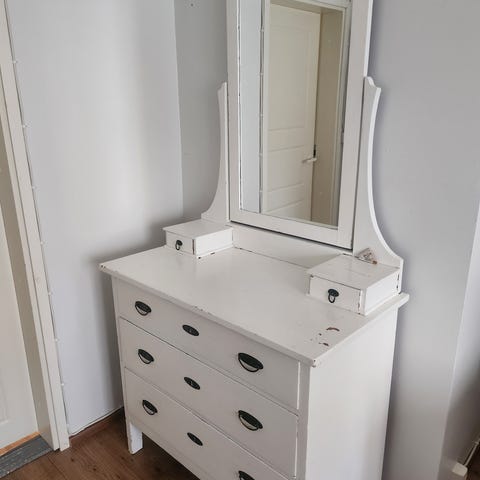 Täyspuinen maitosuklaan värinen lipasto salalokerolla. K 108cm, l 102,5cm ja s 51cm