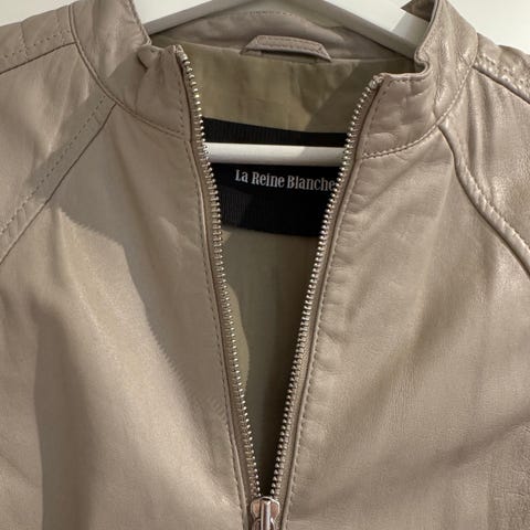 Vaalea nahkatakki.koko 40.kai-kai 47.5.olka helma 68cm.olkapäissä ohuet toppaukset.sivutaskut.