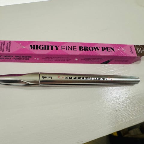 Myydään vain kerran kokeiltu, eli lähes uutta vastaava Benefitin kulmatuote, jolla voi meikata karvamaista jälkeä. Tussissa on kolmipäinen kärki, jolla saa jäljen näyttämään kuin oikean karvan. Loistava tuote varmasti siinä tapauksessa, jos omia kulmakarvoja ei ole paljon tai ne kasvaa ohuesti.