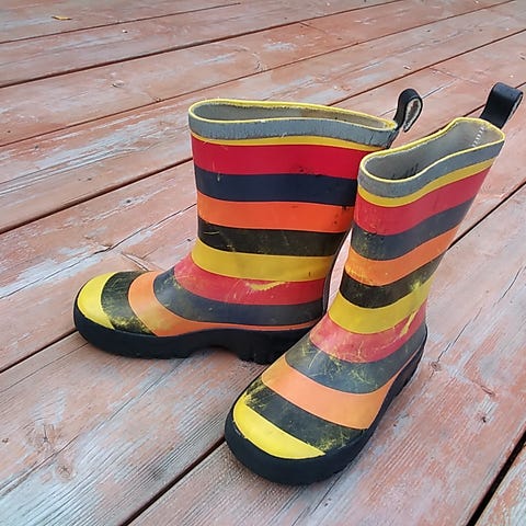 Selling rubber boots, size 28, in good condition. Cat household. Pickup from Etu-Lyötty. Cash or MobilePay.