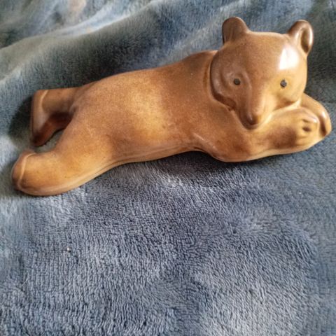 Koristekarhu punaisella rusetilla ja korilla