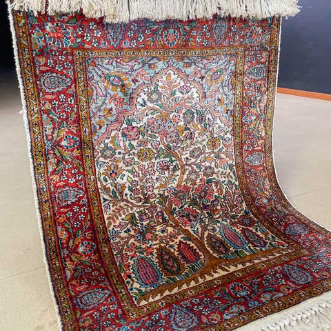 käsinsolmittu itämainen aitomatto villamatto vintage persialainen palatsimatto aito silkki ghom silkkimatto käsinkudottu käsin käsintehty käsityö antiikkimatto vintagematto helsinki helsingissä