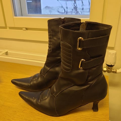 Käytetyt mutta hyväkuntoiset korolliset mustat samettiset nilkkurit, koko 38.