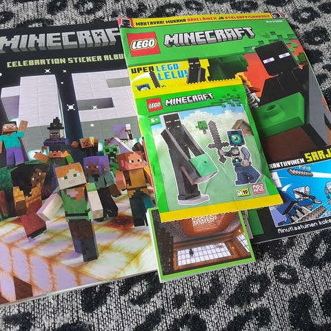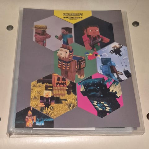 Minecraft keräilykirja ja keräilytarroja. Keräilykortteja.