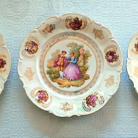 Halkaisija 24,5 cm korkeus 2,7 cm, sinivalkoinen, valmistettu englannissa. Mikron ja konepesun kestävä.
