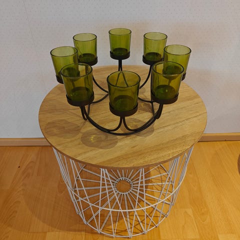 Myynnissä kuvien ehjä sekä siisti kynttelikkö. Mukana on kolme erilaista, magneeteilla kiinnitettävää kylkeä telineeseen. Kynttelikön korkeus on 20 cm, leveys 66 cm sekä kynttiläpesiin mahtuu kynttilä jonka halkaisija on 8 cm. Lähetän ja kulut ovat 9 e, kulkeutuu myös Turkuun ilmaiseksi