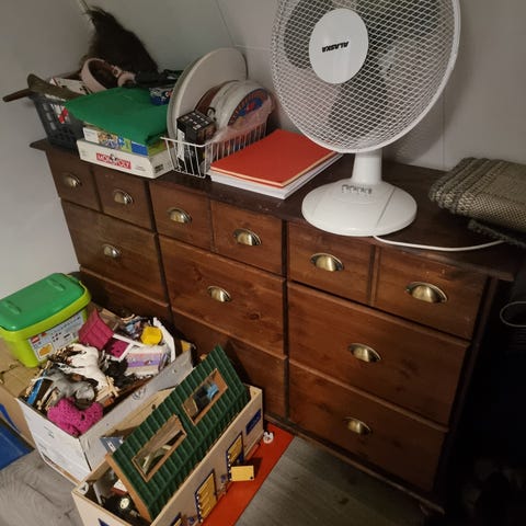 Apteekkarinlipasto 16:lla laatikolla. Kaikki laatikot jumissa, joten vaatii hiontaa. Kansilevyssä myös jälki.