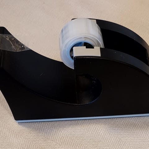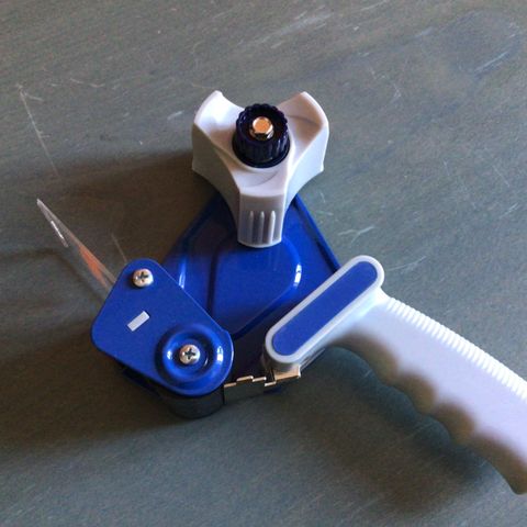 Kuvan teippauslaite varaterineen, sen verran käytetty mitä rullasta puuttuu.