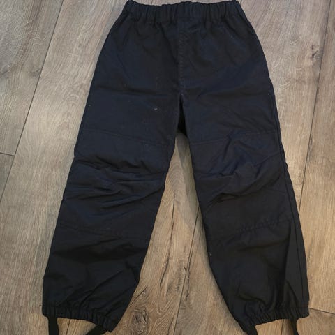 Välikausihousut merkkiä Kaxs. Punttien heijastimet rispaantuneet. Kenkälenkit ehjät mutta kuluneet. Ripustuslenkki toisesta päästä irti mutta muuten ehjät. Sisällä ohut silkkimäinen vuorikangas.