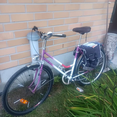 vanha Tunturi 28'' toimivilla dynamovaloilla edessä ja takana, haku Tuusniemeltä