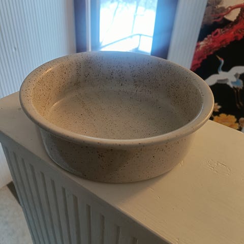 Yhdessä pienessä pyöreässä vuoassa on pieni halkeama. Saa kaupan päälle jos haluaa.