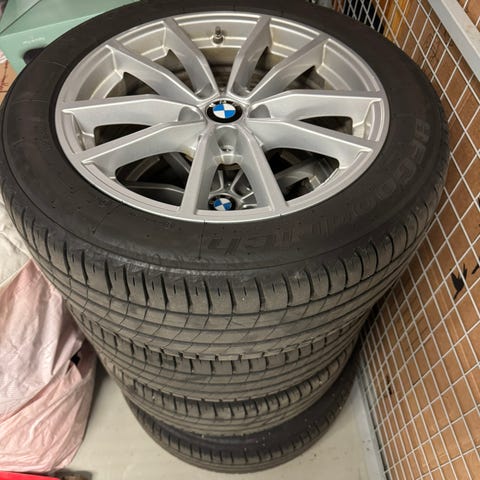 BMW erittäin hyvät 18" kesärenkaat joissa tänä keväänä ostetut kumit paistoleima viikko 02 ja vuosi 2025