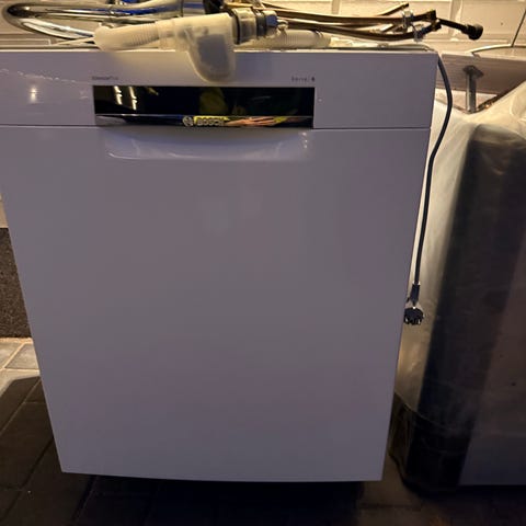 Bosch integroidut astianpesukoneet. Astianpesukone on suunniteltu upotettavaksi keittiökalusteisiin. Laite sisältää telineet astioiden asettelua varten ja liitäntäletkut näkyvissä. Väri valkoinen, materiaali pääosin metalli ja muovi.