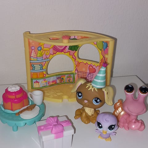 Lelusetti sisältää kaksi isompaa lps sammakkoa ( toisen jalassa magneetti liukumäkeä varten ) sekä pienempi lps sammakko. Setissä tulee myös mukana magneetilla toimiva liukumäki, täytettävä kastelukannu, kaksi ämpäriä ja lapio.