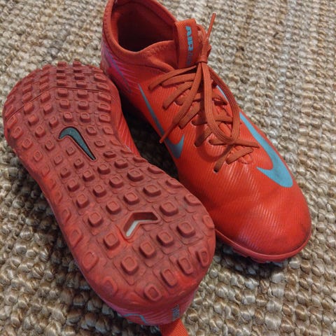 Hyväkuntoiset turf kengät. Sopii tekonurmelle sekä aidolle. Korkeamman varren takia tukee nilkkaa sekä on nuoren helpompi vetää jalkaan.