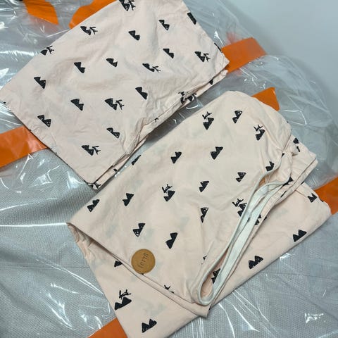 Ferm living Rabbit pupu vauvan makuupeitto vanupeitto, n. 75x75cm, saa käärittyä kasaan nappien avulla, haalea vaaleanpunainen pohja mustat puput, tosi hyvä kuntoinen, hajuton ja eläimetön koti.