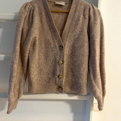 Käytetty mutta edelleen hyväkuntoinen luonnovalkoinen villatakki tai neuletakki