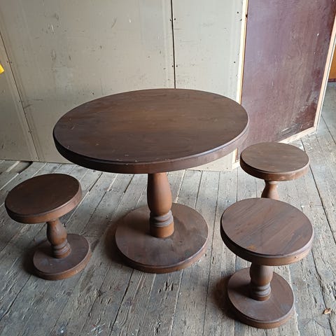 Kuvan pöytä umpipuuta, erikoinen siitä saa tarpeen mukaan kolme erikokoista pöytää, koot 80 x 150 tai 80 x 90 ja 80 x 30 cm. Korkeus. 72 cm. Lähialueelle kuljetus apua..